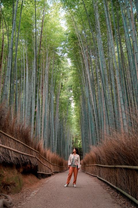 Continue west to Arashiyama, Kyoto’s scenic district at the edge of the mountains. Visit Tenryu-ji, a UNESCO World Heritage Site known for its exquisite gardens that seem to breathe with the hills behind them. Then step into the otherworldly Bamboo Forest, where towering stalks whisper in the wind and light filters through in soft green waves.